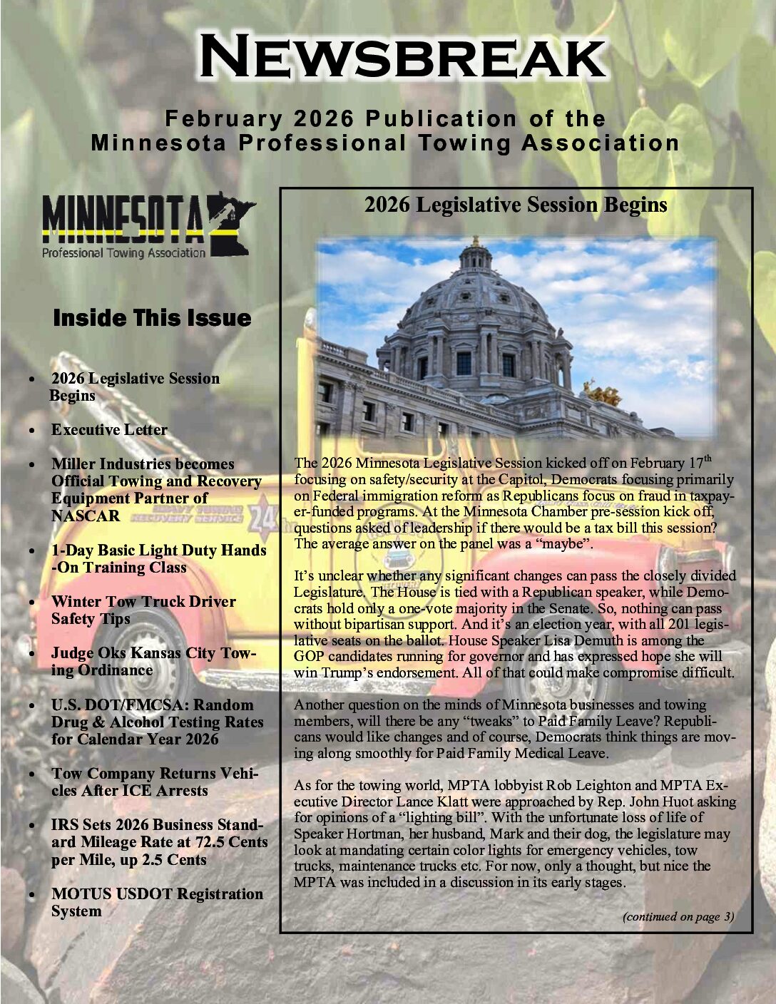 The Newsbreak gets MPTA members caught up to date with what is going on with current news within the MPTA and in the towing recovery industry.